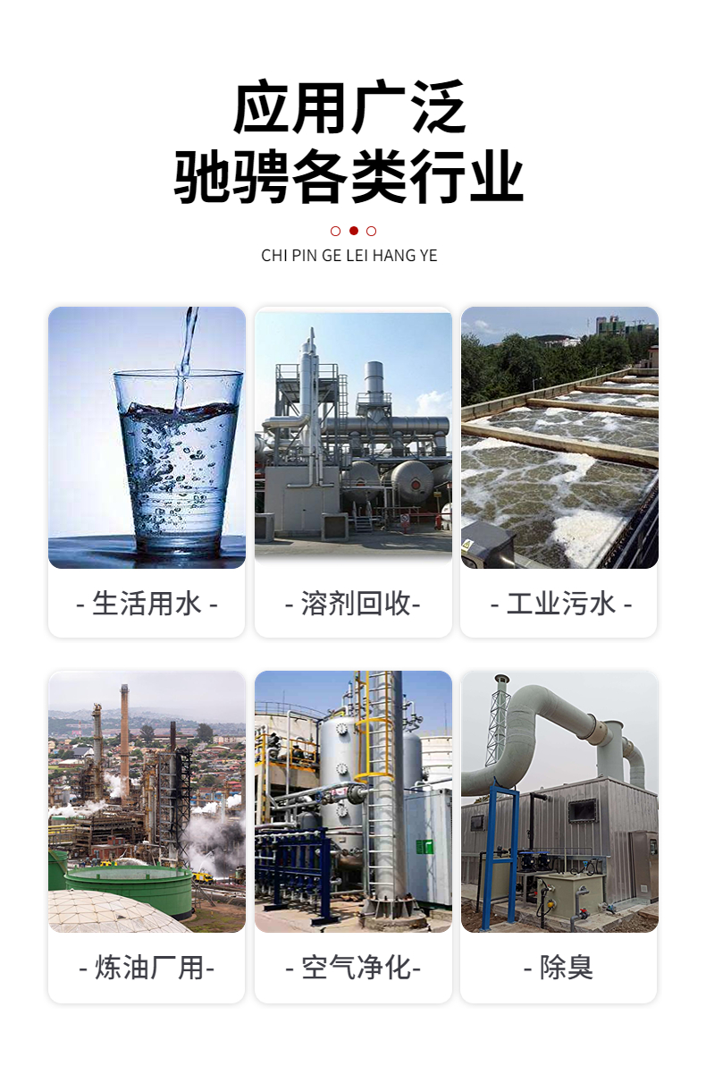 活性炭擁有比表面積大,吸附能力強(qiáng)的特點(diǎn),因此應(yīng)用領(lǐng)域較廣,在水處理、空氣凈化等行業(yè)的重要性相當(dāng)重要。